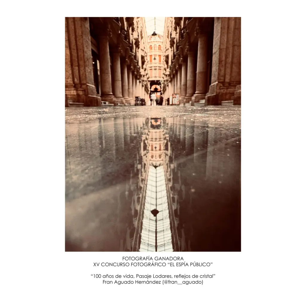 Fotografía ganadora del concurso «100 años de vida, Pasaje Lodares, reflejos de cristal» , realizada por Fran Aguado Hernández.